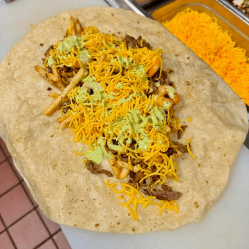 Carne asada, shrimp, fries, salsa fresca, cheese, baja sauce